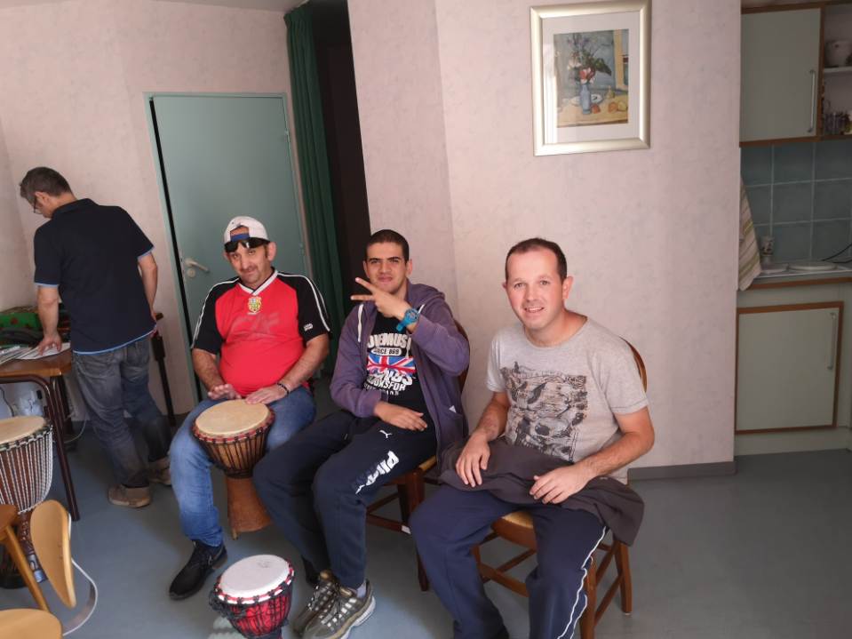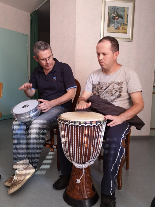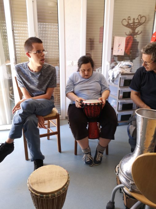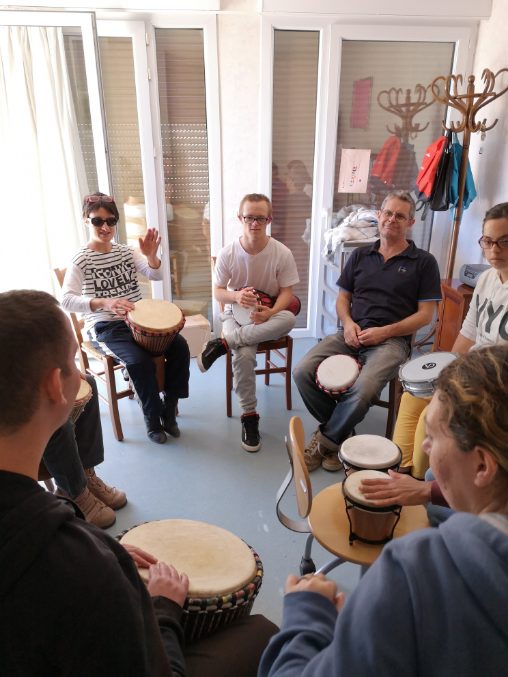 Depuis 2 ans1/2, un atelier « percussions » a été mis en place en collaboration avec l'association « Tétines et Biberon » le jeudi après-midi au foyer Mon Village. L'intervenant Christophe LECORDIER propose 2 séances de ¾ d'heure chacune, pendant lesquelles il sensibilise les résidents au rythme, à la musique, au chant mais en même temps, il leur apprend à travailler ensemble, à partager des exercices dans le respect de chacun. L'objectif 1er de ces séances est de prendre du plaisir et s'exprime chacun à sa façon. A quelques mois près, un atelier « théâtre » à vu le jour, tous les mardi après-midi au foyer Mon Village. L'intervenante Katy KASPRZAK propose également 2 séances : elle favorise avec les groupes l'expression des émotions, la création, l'imagination, l'improvisation, tout en travaillant sur le respect de l'autre. Par exemple, en partant d'un conte comme « le petit chaperon rouge », Ces 2 ateliers ont beaucoup de succès, de nombreux résidents souhaitent y participer.Chaque fin d'année, des présentations d'ateliers sont faites pour montrer le travail effectué tout au long de l'année. Auteure : Isabelle SCLAVO, chef de service éducatif, Foyer Mon Village