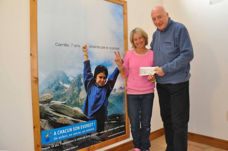 https://www.achacunsoneverest.com/ A chacun son Everest aide les enfants atteint d’un cancer ou de leucémie à surmonter leur handicap. Le 27 janvier 2014, Michel CAPRON, Président du Fonds Handicap Solidarité, remettait à Christine JANIN un chèque de 15 000 euros, destiné à financer les stages organisés par l’Association « A chacun son Everest » pour aider les enfants atteints d’un cancer ou de leucémie à « guérir mieux » et à surmonter leur handicap. Cette association a été créée en 1974 par Christine JANIN, médecin-alpiniste (première française au sommet de l’Everest – 8848m) et le Professeur André BARUCHEL, chef du service d’hématologie pédiatrique de l’hôpital Robert DEBRE à Paris. Cette remise de chèque a eu lieu à Chamonix, au chalet de l’association, où se déroulent les stages, un magnifique chalet avec une vue sur les montagnes à couper le souffle. Chaque année, vingt semaines de stages sont organisées, adaptés à chaque enfant en fonction de l’âge, de la saison et de l’évolution de la maladie. A chacun son Everest s’appuie sur la force de la symbolique comparative entre la difficulté de l’ascension du sommet le plus haut du monde et celle de dépasser son handicap afin de trouver le chemin de la guérison. C’est avec enthousiasme que Michel CAPRON et toute l’équipe du Fonds Handicap Solidarité ont décidé de contribuer à la réalisation de ces stages, dont les frais sont intégralement pris en charge par l’association. Les sourires d’enfants qui tapissent les murs du chalet témoignent que ceux-ci retrouvent confiance en leurs corps, en leurs capacités ainsi que du plaisir et une certaine insouciance : celle de l’enfance.