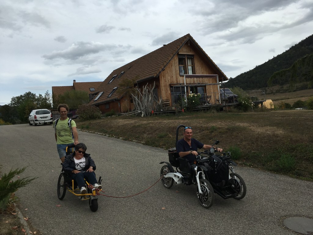 https://youtu.be/h_jrtoYZsKw?si=Gih3GaWNl3KGx5vR Jany BAYOL, sa fille Françoise et Elisabeth CASTELLAN , administrateurs du Fonds se sont rendus les 21 et 22/09/19 à Cornillon en Trièves (38) pour remettre le grand chèque de 6100,80 euros reconnu et s'exercer au parapente. La météo n'a pas permis de faire la remise du grand chèque lors du festival ICARE à Grenoble. Nous avons cependant retrouvé avec joie Vincent BOURY président de l'association ADONF, Laure PARMENTIER membre de l'association et fait la connaissance de Francis TROUILLET le moniteur et formateur de pilote de parapente pour personne en situation de Handicap. Vincent BOURY et Francis TROUILLET nous ont chaleureusement reçu pendant 2 jours dans le chalet construit par Vincent « La cabane du Bonheur » Nous avons vu le parapente déployé en fonction et pris une vidéo faite quelques jours auparavant avec le parapente financé par le Fonds. Nous reprendrons contact pour faire l'opération au printemps 2020 dans notre région.