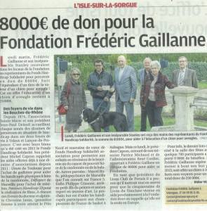 https://www.fondationfg.org/ La Fondation Frédérique Gaillanne a reçu de la part du Fonds de Dotation la somme de 8 000 euros pour aider à l’éducation d’un chien pour aveugle. Mira Europe est la première école de chiens-guides spécifiquement destinés à des enfants déficients visuels à partir de l’âge de 12 ans, dans toute l’Europe. La Fondation éduque sur son site, à L’Isle-sur-la-Sorgue (Vaucluse) les chiens-guides qu’elle remet gratuitement à des enfants français et européens âgés de 12 à 18 ans.
