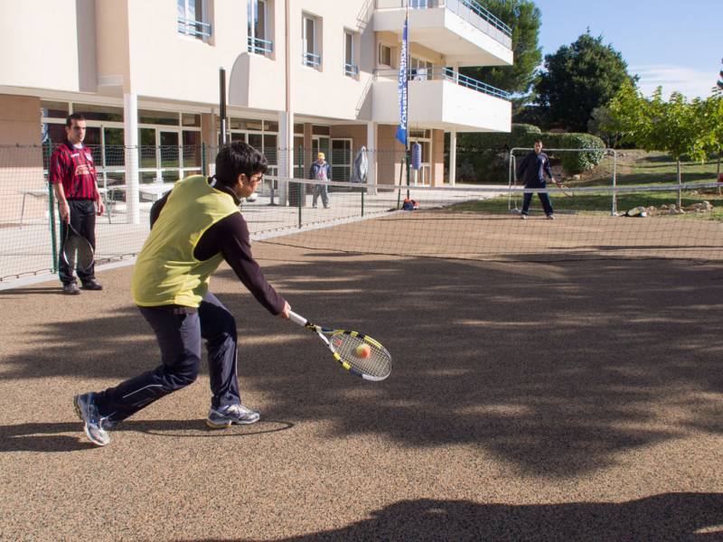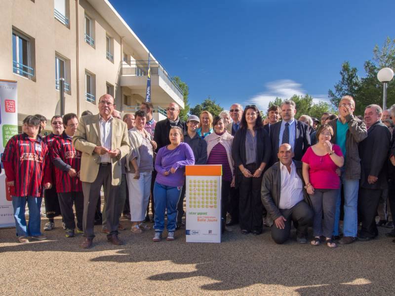 http://association-saintemarie.org/ Un terrain multisport et écologique offert au foyer de vie Bois Joli. L’opération « balles jaunes », initiée par la Fédération Française de Tennis, a permis la création d’un terrain multisports au foyer de vie Bois Joli. Cette opération permet la collecte et le recyclage des millions de balles de tennis hors d’usage ; elles sont ensuite broyées et le caoutchouc récupéré permet d’obtenir un matériau qui entre dans la fabrication de sols sportifs comme les cours de tennis, les pistes d’athlétisme, les sols des jardins d’enfants et de cours d’écoles maternelles. La seconde vie de ces balles jaunes permet donc de construire de nouveaux équipements et d’offrir une alternative écologique. Claude CARBONI, Chef de service à Bois-Joli et Odile TROUILLET, éducatrice sportive, ont travaillé durant 4 ans sur ce projet ; il permet au foyer de proposer des activités de plein air (tennis, badminton, volley, football, handball, basket) sans avoir à quitter l’enceinte du foyer. La construction de ce terrain multisports a pu voir le jour grâce aux soutiens financiers du Conseil Général des Bouches-du-Rhône, qui a pris en charge 70 % de son coût, de la Fédération Française de Tennis, du foyer de vie Bois-Joli et du Fonds de Dotation Handicap Solidarité. Cette réalisation exemplaire a été inaugurée le 11 octobre 2013, en présence, notamment de Jean Claude BOUSTEAU, Président du Comité de tennis 13, Alain FISCHER, Président de la ligue Provence de tennis, Jean Paul DELEUIL, Président de l’Association Sainte Marie, Michel CAPRON, Président du Fonds Handicap Solidarité, Georges VIRLOJEUX, Maire de Lançon-de-Provence, et Alexandra BOUNOUS-DUPREY, représentant le Conseil Général des Bouches-du-Rhône.