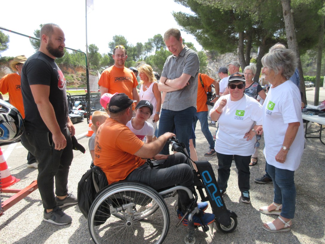 Michel CAPRON président, Jany BAYOL, Elisabeth CASTELLAN administrateurs du Fonds ont participé à l’animation de cet évènement sur le circuit de l’Oratoire en partenariat avec Jean-Claude FANTI président de l’association RG Karting Handisport Martigues et le Lions club de Pertuis. Toute personne en situation de handicap était invitée gracieusement à réaliser des séquences de kart biplace avec un pilote . 26 pilotes ont payé leur places pour piloter les personnes handicapées en karting biplace. Nous avons eu la visite de : Pierre DHARREVILLE, député de la 13ème circonscription des Bouches-du-Rhône. https://www.nosdeputes.fr/circonscription/departement/Bouches-du-Rh%C3%B4ne Il était accompagné de sa fille, s’est montré très à l’écoute des personnes en situation d’handicap et satisfait de cette initiative. 150 personnes sont venues rendre visite et/ou faire du karting. Plusieurs Foyers de vie ont fait le déplacement, dont les résidents de Mon Village et Bois Joli accompagnés de leurs éducateurs, de Jean-Paul DELEUIL président de l’association Sainte Marie, du directeur des établissements Jean-Louis THIVET et du chef de service Isabelle SCLAVO. "Faire du kart pour les personnes en situation de handicap est un dépassement de soi qui les rend heureux, leurs visages parlaient d’eux même de la joie éprouvée.”